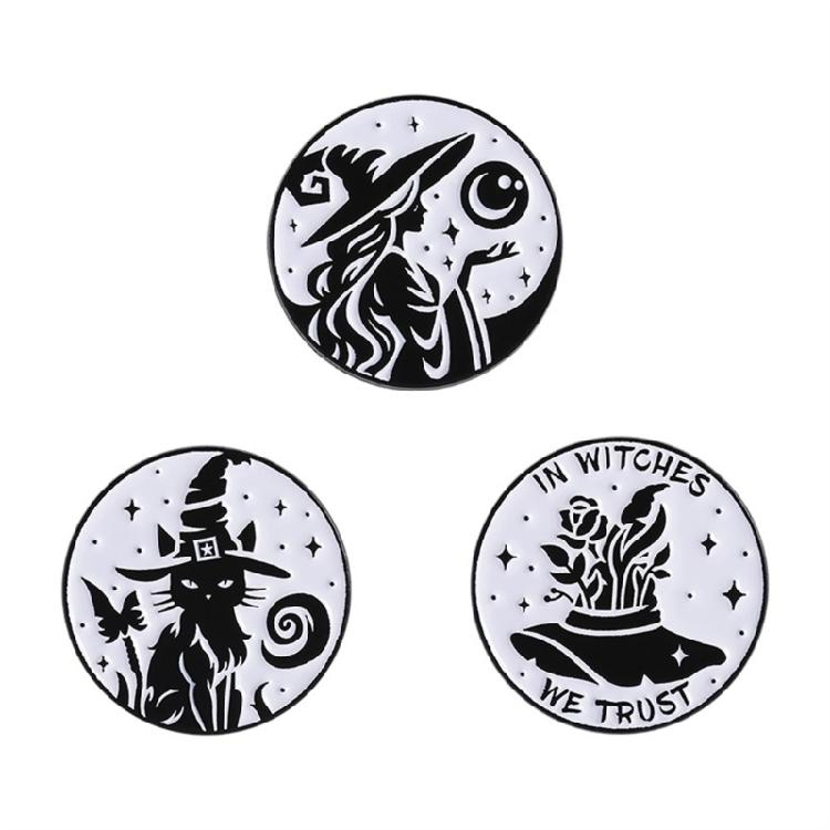 Crafted with premium alloy and vibrant enameled, this Gothic witch brooch features a mystical black cat, moons, and spellbinding witch motifs for lasting durability and eye catching charm.