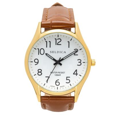 Clefer Serdica Analog White PU Leather Japanese Brown Watch, Dial, Strap, Movement, SD-AM336-WTG, Men's,