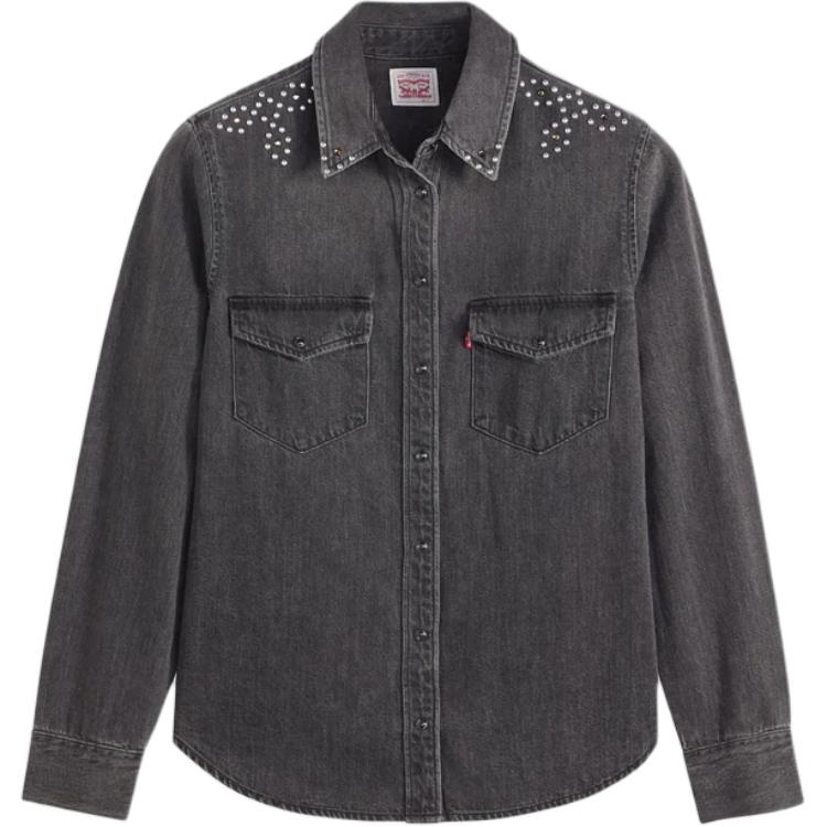 Levis Solid Color Single-Breasted Denim Point Collar Long Sleeve Shirt Women Shirts 167860108