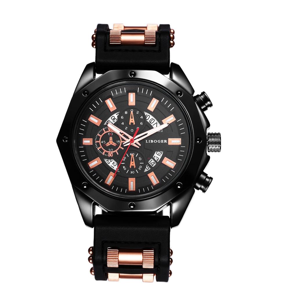 Men's Silicone Polygonal 3-Lens Watch: Quartz, Waterproof, Analog Display, Calendar, Easy-to-Read Large Dial, Casual and Everyday Wear - Perfect for