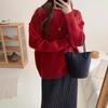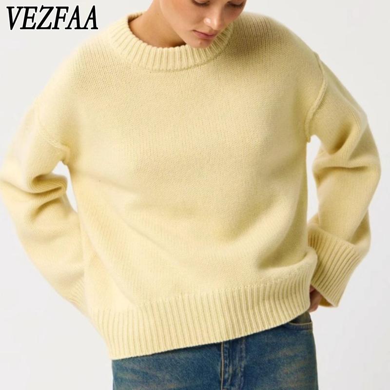 VEZFAA Women's Fashion Casual Fall Winter Solid Color Print Long Sleeve O-Neck Sweaters
