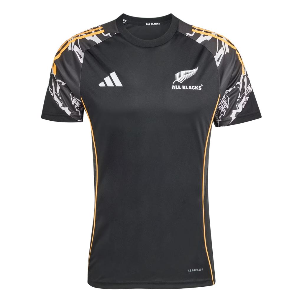 Adidas X Marvel Rugby FW25 All Blacks Performance Slim Fit Striped Short Sleeve T-Shirt Men Tops JV9966