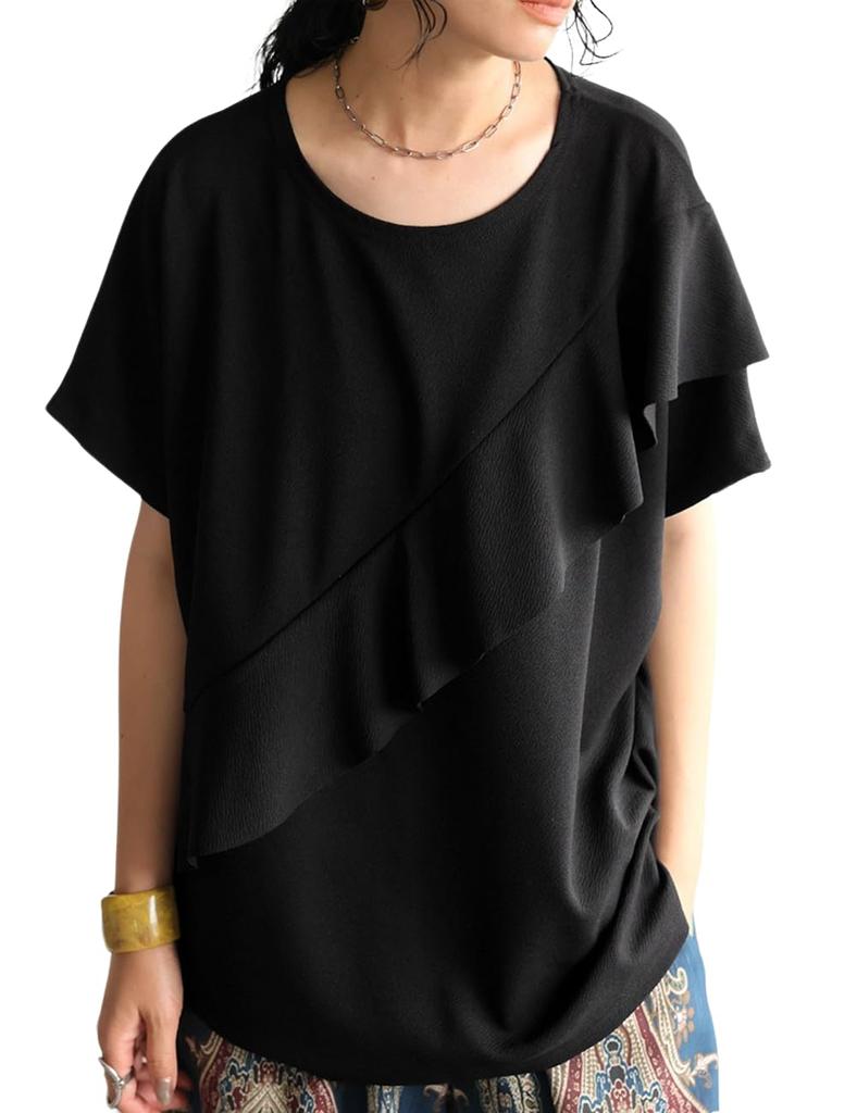 Antiqua Women's Ruffled Top, Short Sleeve, Solid Color, AJ-01785 F 05, Black