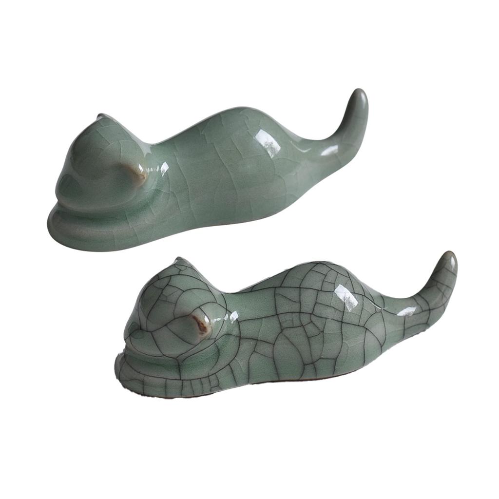 Felimoa Calligraphy Brush Rest/Paperweight, Cat Design, Approx. 10.2 X 3cm, Set of 2 (Celadon)