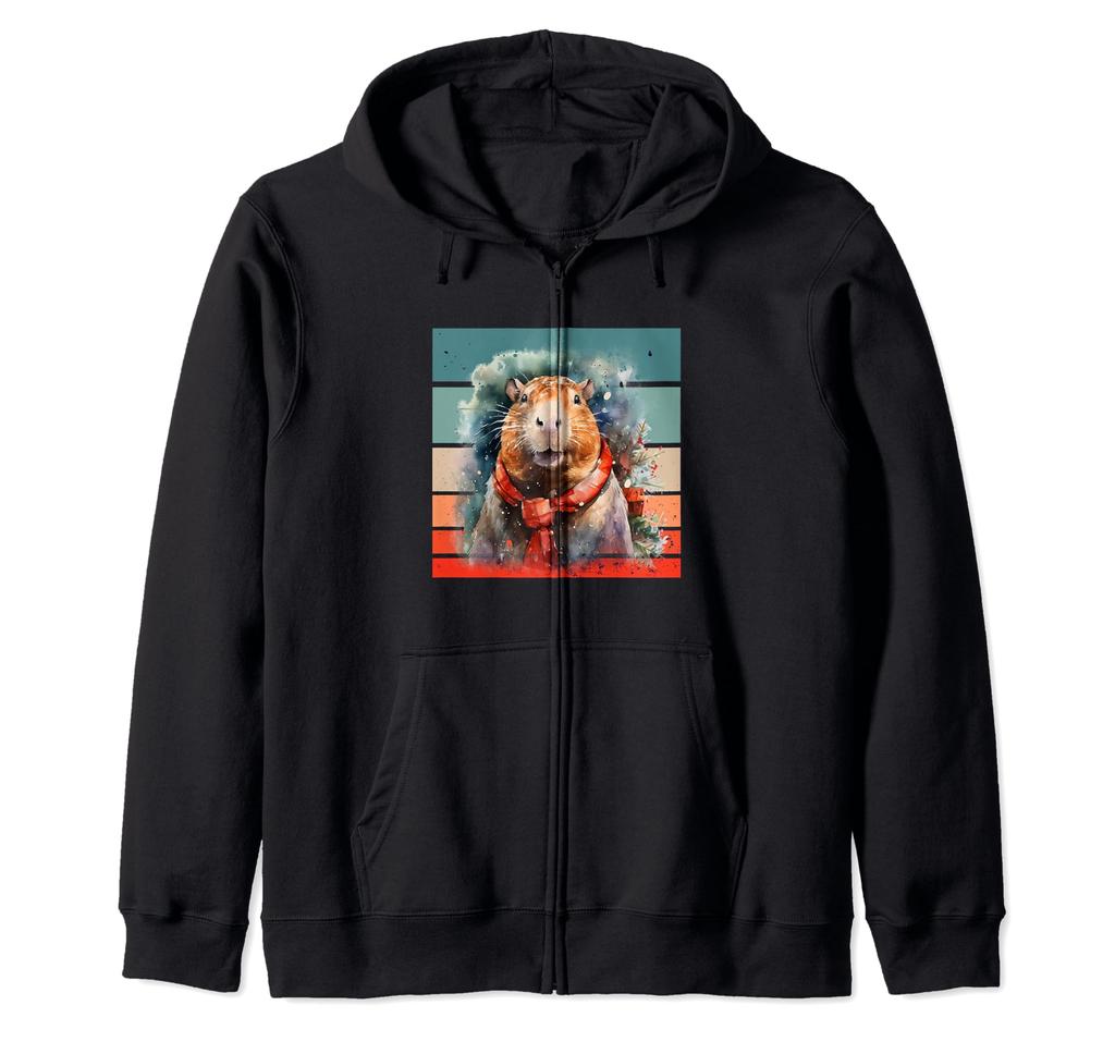 Capybara Winter Scarf Snow Capybara Lover Nature Animal Pet Zip Hoodie