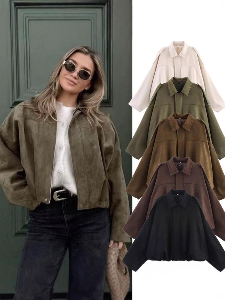 Spring New Arrival Casual Versatile Women's Velvet-Like Texture Stand-Collar Flight Jacket Coat
