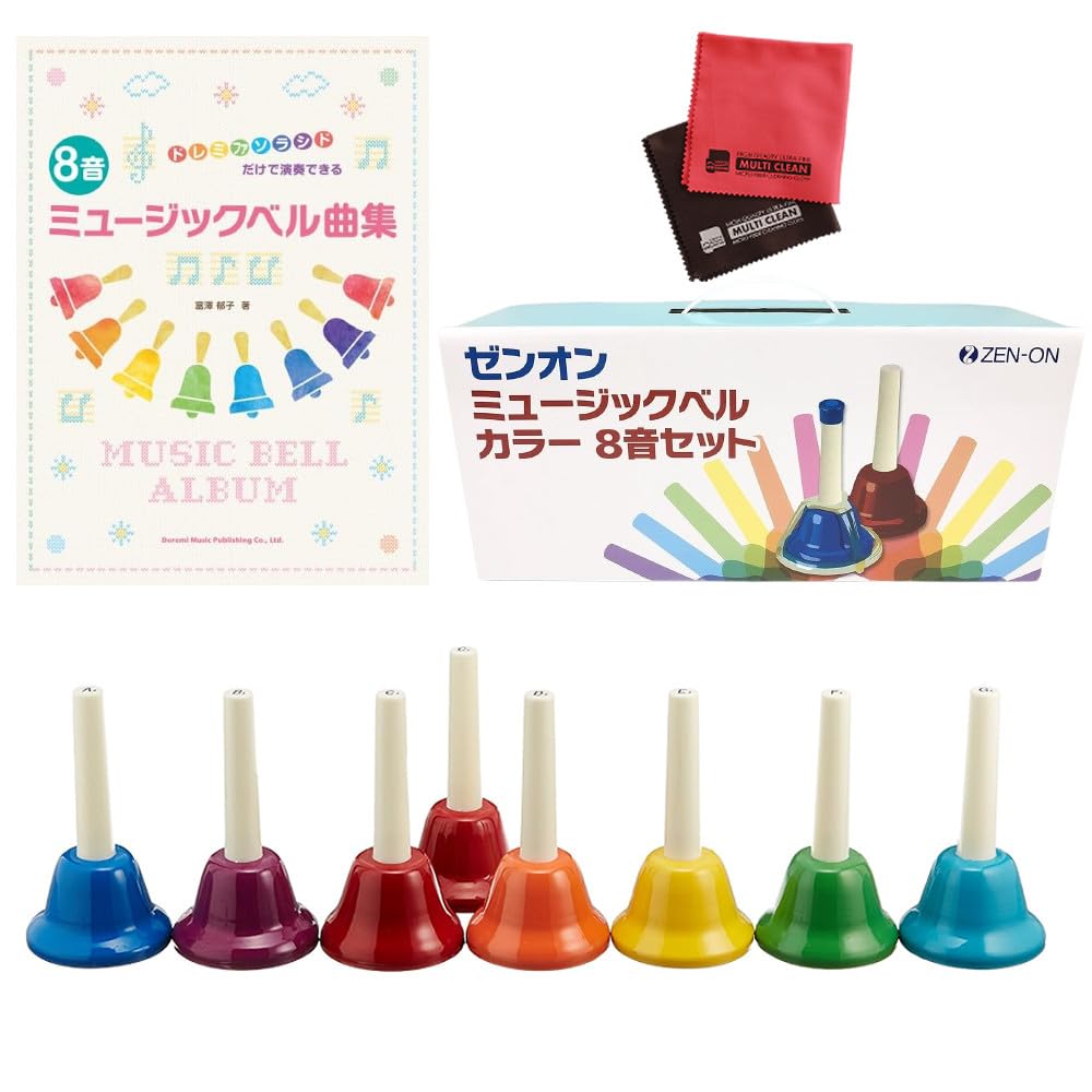 We've answered that demand by compiling a wide selection of songs suitable for a variety of events, along with arrangements that effectively use the 8 notes to create a rich, resonant sound. This set includes the Zen-On Music Bells, 8-note hand bells (CBR-8), an 8-note music bell songbook that can be played using only the notes Do, Re, Mi, Fa, So, La, and Si, and a set of two microfiber cloths (V-81776).