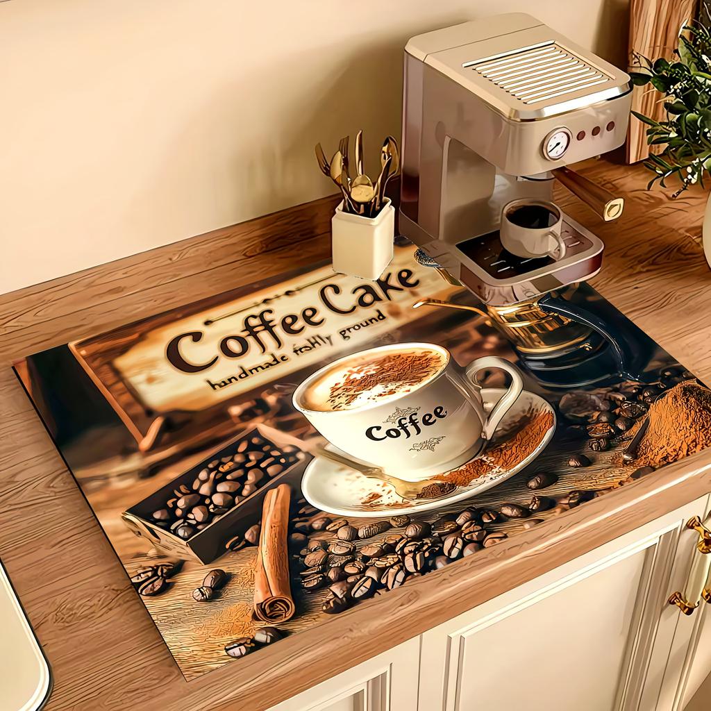 1Pcs Dish Rubber Drying Mat With Coffee Themed Print For Coffee Shop Restaurant Kitchen Carpet Tableware Durable Diatom Mud Table Mat Coffeeware
