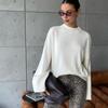 VEZFAA Women's Fashion Casual Fall Winter Solid Color Print Long Sleeve O-Neck Sweaters