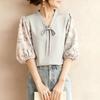 ZANZEA Women Casual V-Neck Loose Print Splice Half Sleeve Blouse