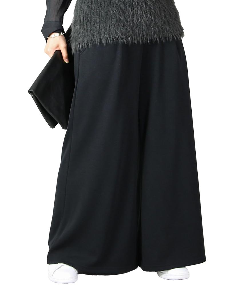 Andit Flared Pants with Fleece Soft and Elastic Size 51 Black Women's Wide-Leg Skirt-Style Lining, Warm, Waist, F,