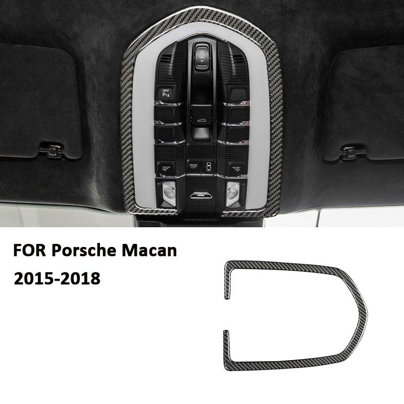 For Porsche Macan 2015-2018 Carbon Fiber Car Front Roof Reading Light Panel Trim Frame Interior Decoration Sticker Accessories