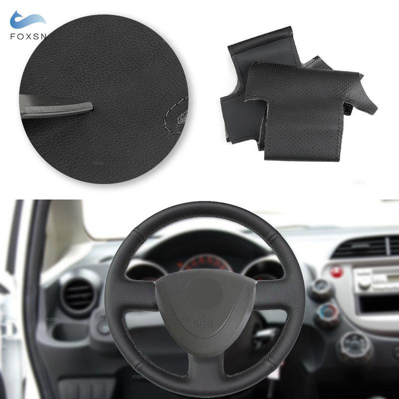 Black Perforated Leather Car Accessories Steering Wheel Cover Trim For Honda City 2002-2008 Civic 2002 -2005 Fit Jazz 2001-2005