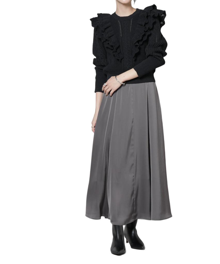 Nano Universe Satin Flare Maxi Skirt Be Paired with Other Small 023 Charcoal (Can Items) Women's 669-5230306