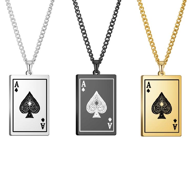 Cool Men Spade Poker Card Necklace Stainless Steel Card Pendant Necklace Multifuntional Chain Necklaces for Daily Party