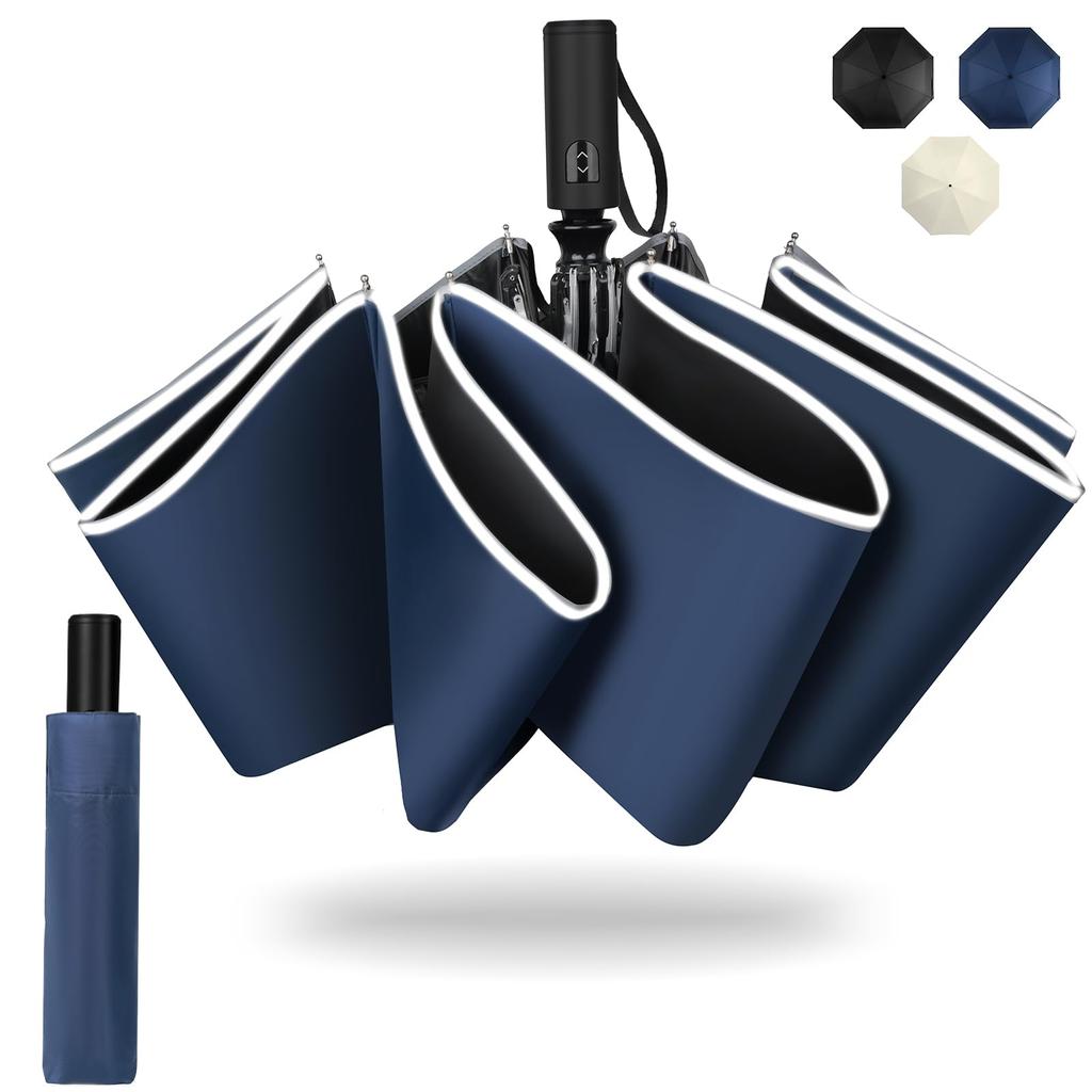 Folding Automatic 103cm Heavy Reflective Sun UV Includes Storage Pouch Ultra-Water-Repellent, 8-Rib Umbrella One-Touch Open/Close, Large, Diameter,