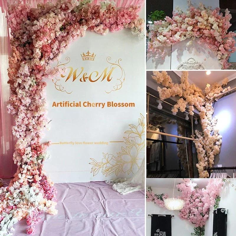 Artificial Cherry Tree Rattan Flower, Silk Wedding Background, Wall Decoration Flower, Home Decoration