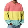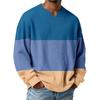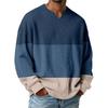 Men's Color-Blocked Stylish V-Neck Ribbed Textured Long-Sleeve T-Shirt