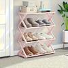 Four-Tier Folding Shoe Rack - a Space-Saving Storage Solution That Can Hold 8 Pairs of Shoes, Featuring an X-Shaped Plastic Frame, Vintage Design