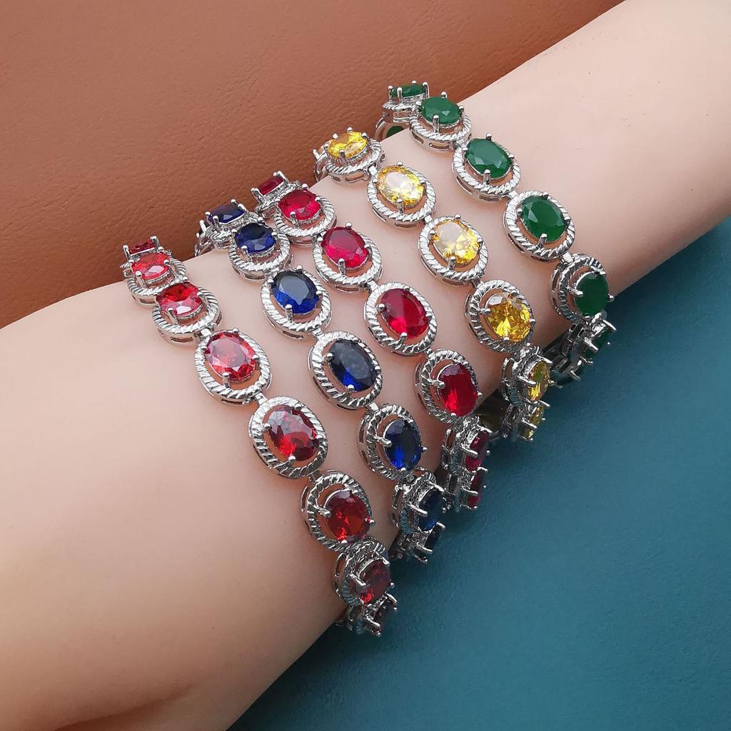 2026 Fashion Trend Jewelry Multi-color Zircon Bracelet Simple Versatile Oval Hollow Bracelet Women