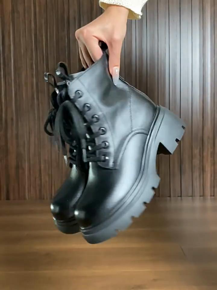Johnature Genuine Leather Women's Shoes Versatile Lightweight Anti Slip Thick Heel Short Boots