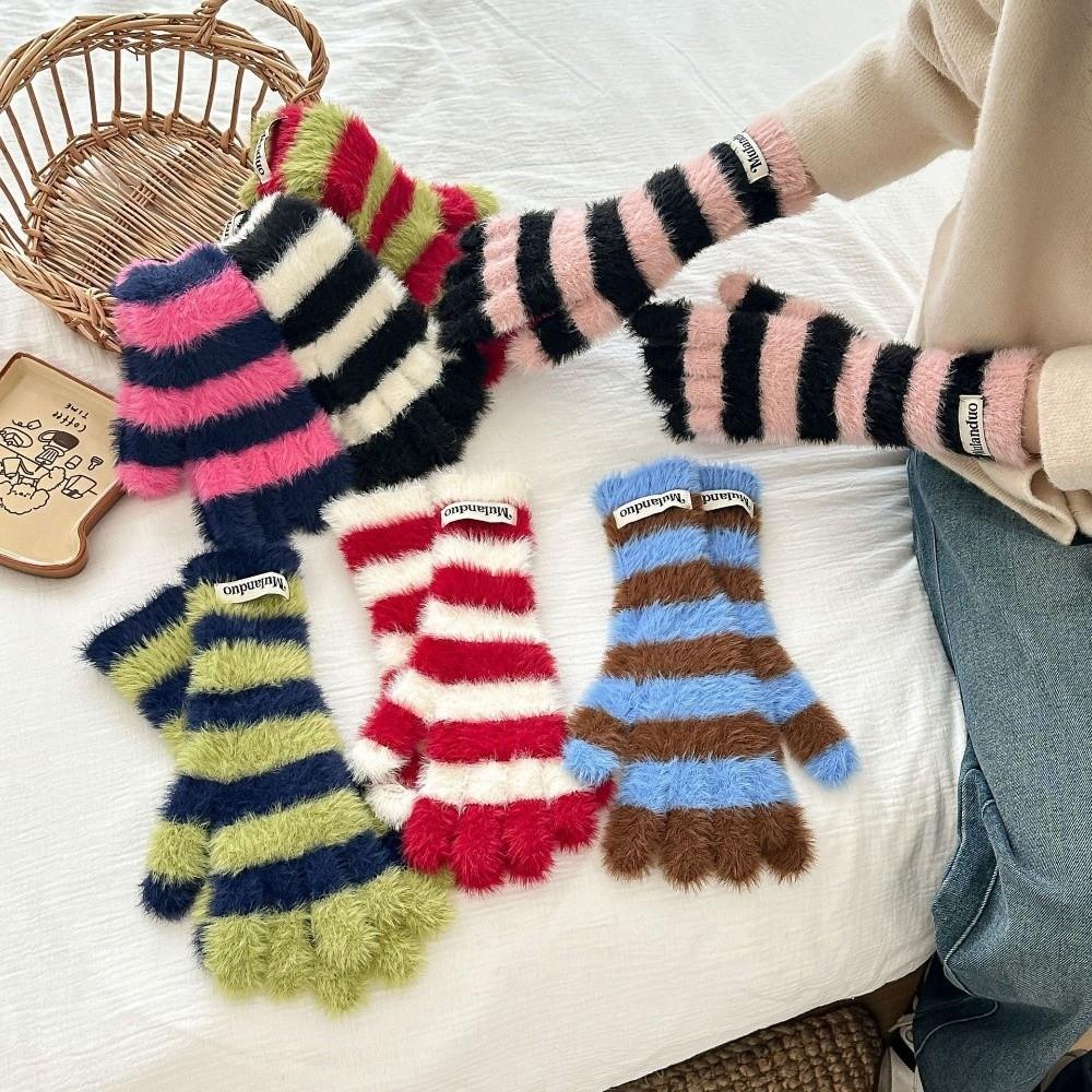 Cold Protection Striped Gloves Windproof Touchscreen Gloves Casual Warm Mittens Winter