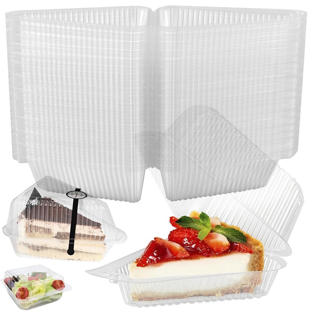 100Pcs Cake Slice Container Clear Triangle Square Round Dessert Box Food Packing Box Plastic Fruit Cupcake Mousse Cheesecake Box