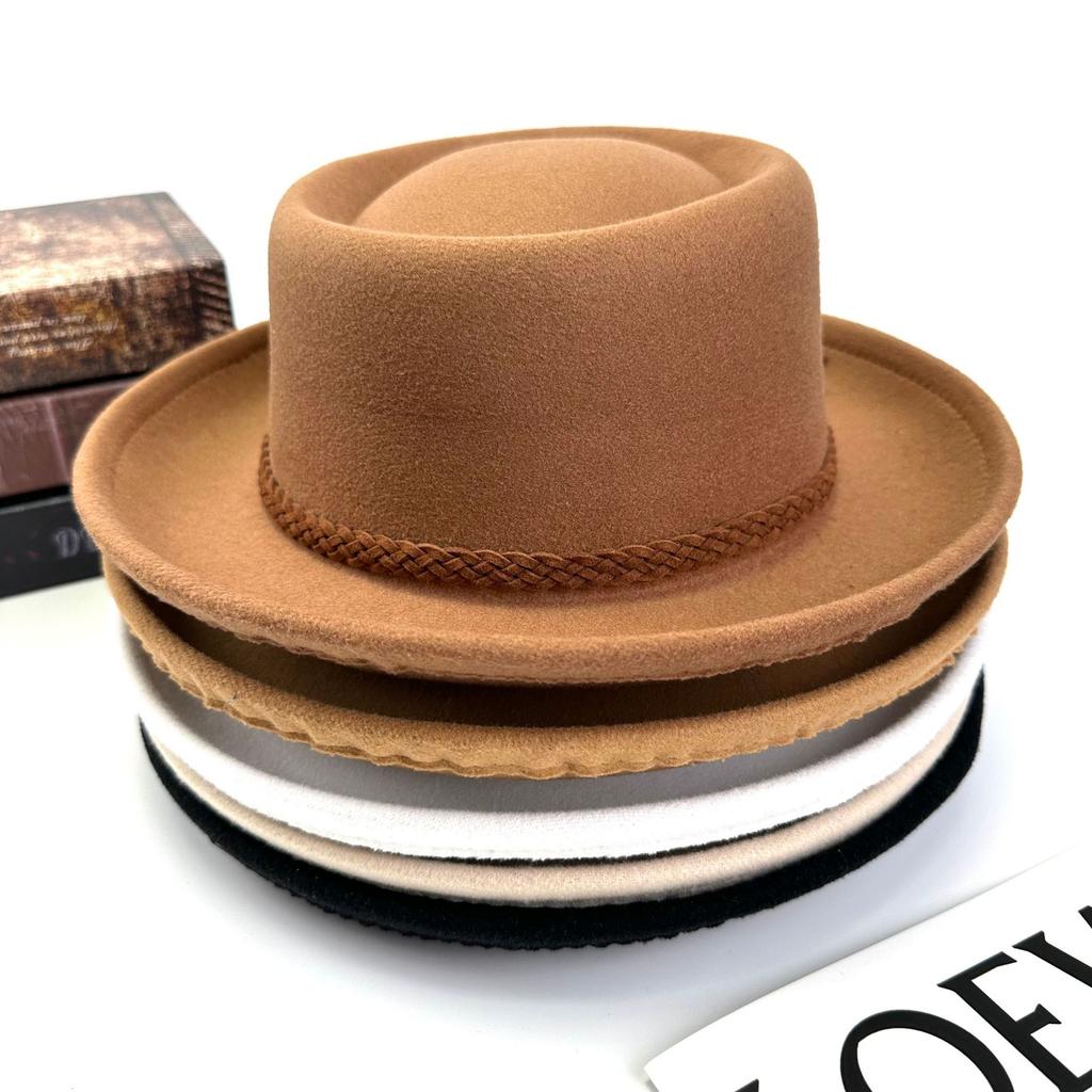 Four Seasons Top Hat Knitted With Felt Hat Curled Edge Flat Top Versatile Sunscreen Women And Men
