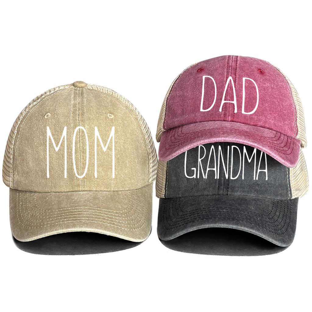 DAD And MOM Mesh Cap Adjustable Trucker Hat Grandpa Grandma Caps Distressed Snapback Baseball Cap Ideal Choice For Family