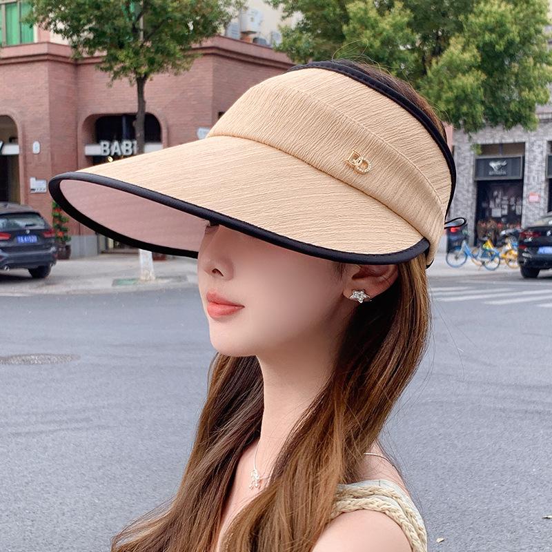 Hat Summer Women'S Sunscreen Hat Large Brim Empty Top Hat Alphabet Face Cover Sun Hat Outdoor Versatile Sun Hat