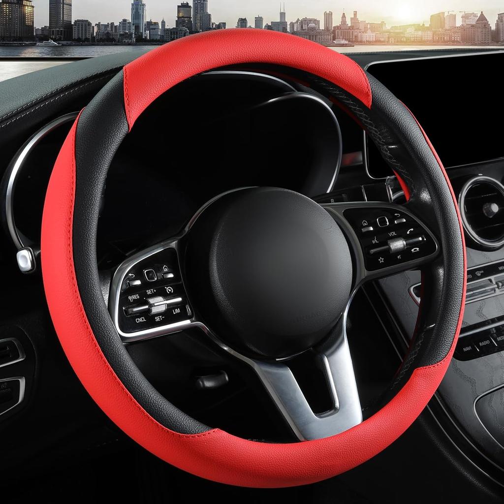 Car Steering Wheel Cover, Microfiber Leather Steering Wheel Cover Red,Universal 15 Inch Anti-Slip Comfortable Steering Wheel Covers Men Women