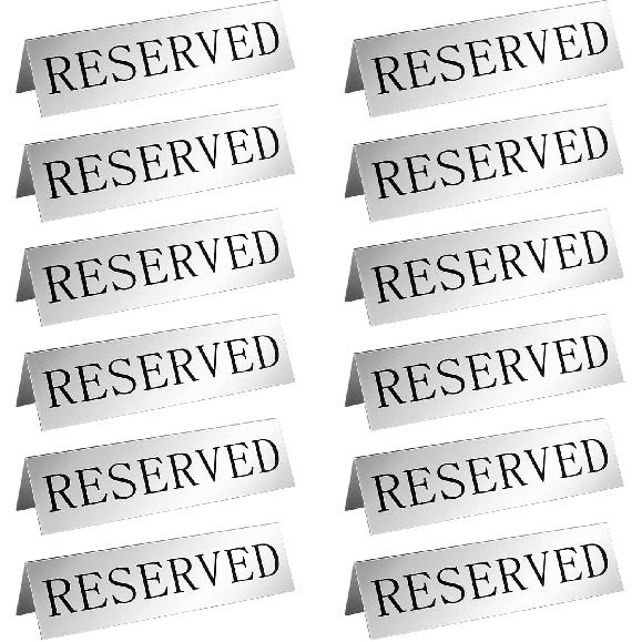 Abundant Quantity: what you will receive are 12 pieces of reserved signs, which are printed with black letter of [Reserved], each of the reserved signs measures approx. 15 x 8 cm/ 5.91 x 3.15 inches, so the guest can see the reserved position clearly