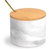 Marble Salt Cellar Box with Bamboo Lid & Metal Spoon, Modern Stone Salt or Pepper Sugar Spice Seasoning Bowl Container Jar Holder Well Keeper Dish