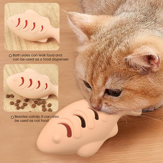 Made from food-grade silicone, this cat toy is safe, healthy, elastic, and bite-resistant, making it ideal for cleaning your pets mouth. Its cute fish-shaped design stimulates your cats natural hunting instincts, encouraging exercise and helping to soothe their mood. Free from catnip, it offers a gentle play experience suitable for sensitive pets. The versatile design also appeals to dogs, making it perfect for multi-pet households by providing hours of shared fun. Additionally, the toy functions as a food leakage device, with sides that release treats to keep your cat engaged and entertained.