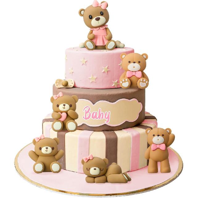 6 Pcs 3D Bear Cake Toppers Bear Cake Decorations Baby Shower Party Favors Home Ornaments for Baby Shower Birthday Party Cake Supplies Boys Girl