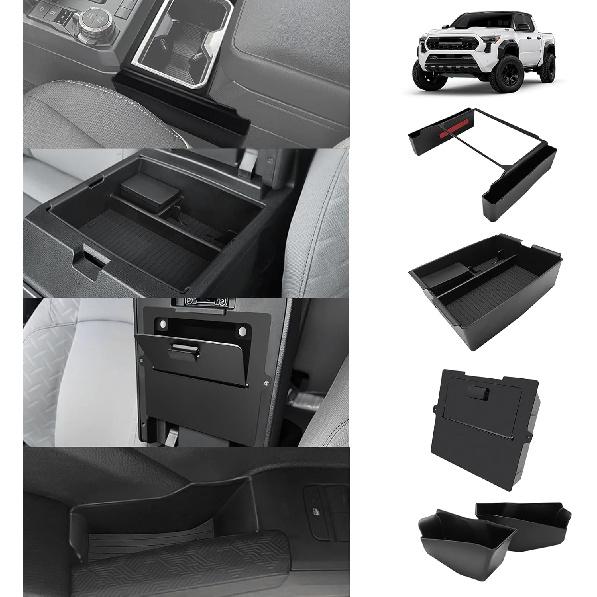 Muslogy Center Console Organizer Compatible with 2024 Toyota Tacoma 4th Gen Accessories Interior Storage Box Insert Tray Phone Pocket(Console