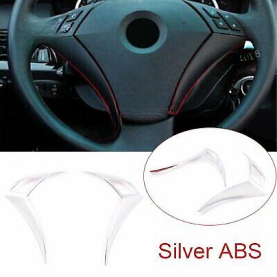 2pcs Silver ABS Car Steering Wheel Trim Cover For BMW 5 Series E60 E61 2003-2010