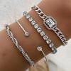 4 Piece Set Women Zircon Fashion Versatile Retro Personality Fried Dough Twists Bracelet Imitation Gem Punk Bracelet Bracelet