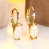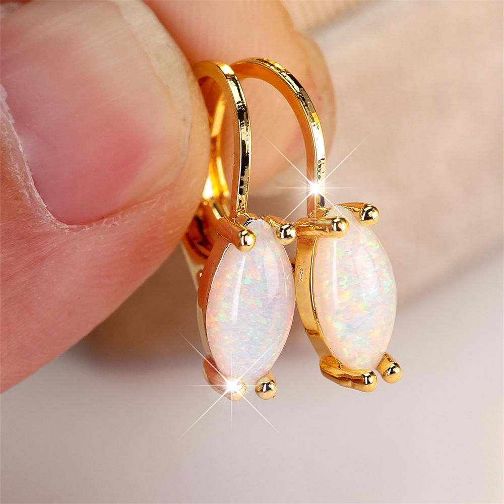 White Pink Blue Opal Marquise Stone Hoop Earrings For Women Simple Trendy Rose Gold Silver Color Ear Buckle Wedding Jewelry Gift