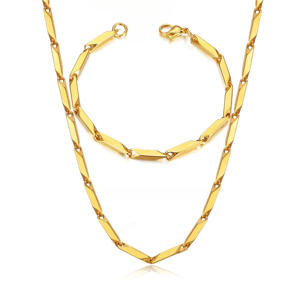 Gold Color Stainless Steel 3mm Irregular Link Chain Bracelets Necklace For Women Party Wedding Jewelry Sets Gifts