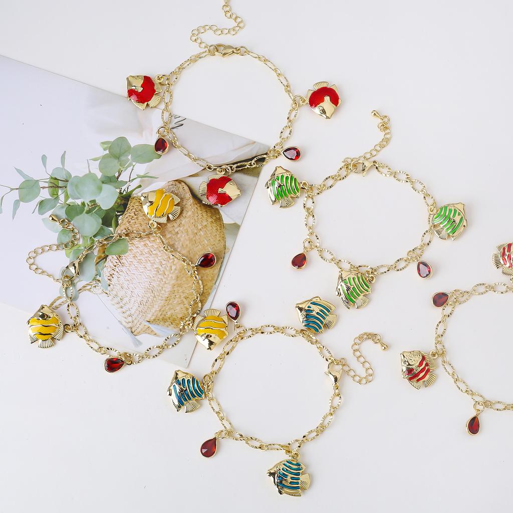 8-Color Gold-Plated Fish Pendant Crystal Bracelet Charming for Women Girls Party Trending Wrist Jewelry Birthday Vacation Gift