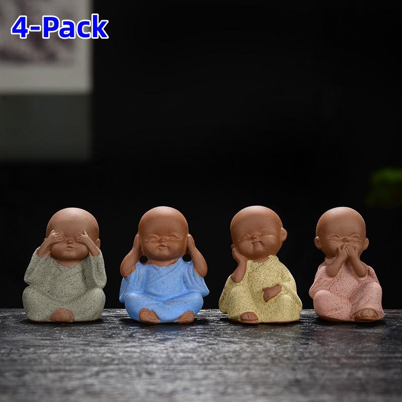 4-Pack Mini Ceramic Tea Pets Home Decor Gardening Decoration Creative Little Monk Cute Figurines & Miniatures Teshouse Ornaments