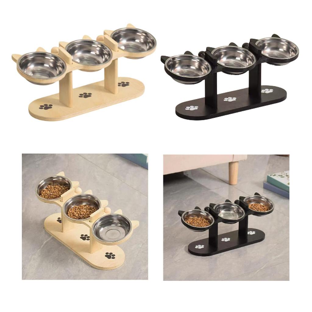 Elevated Pet Food Feeder Kitten Bowl Durable Wood Stand Dog Bowl Holder Neck Protection for Small Pets