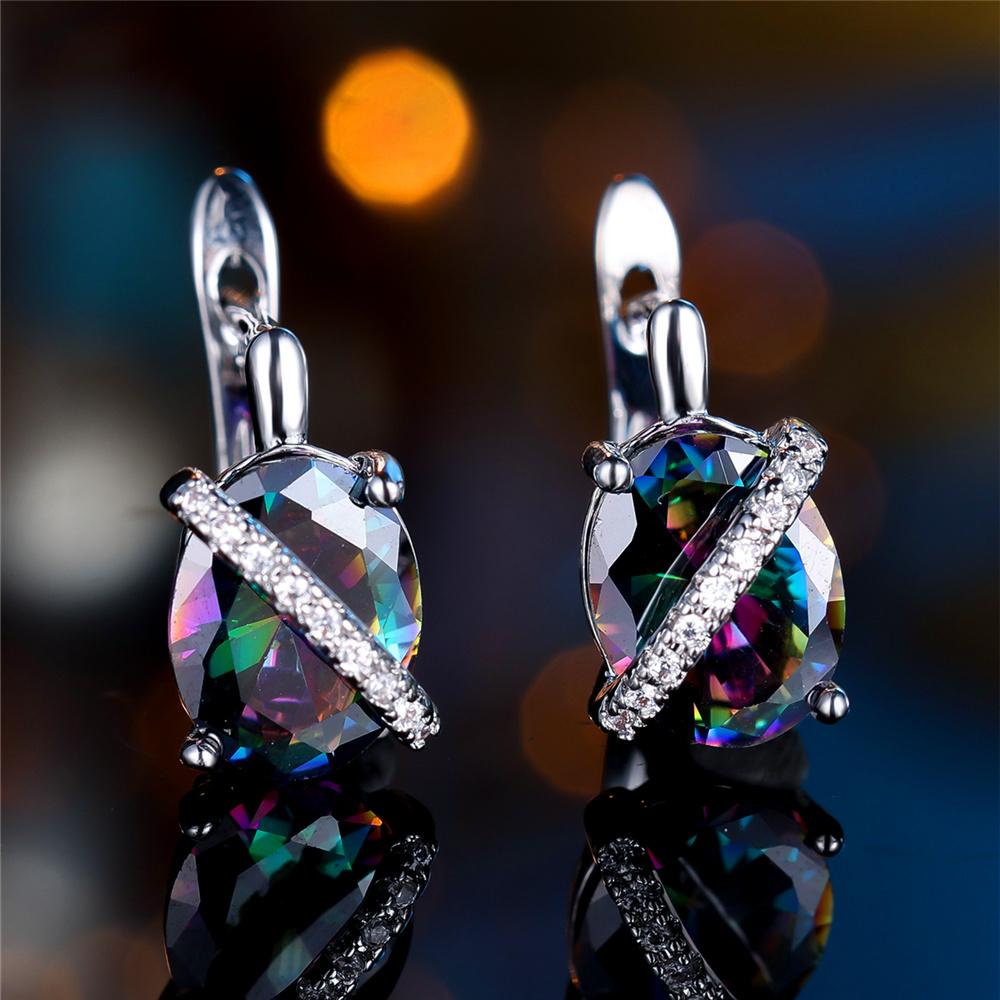 Cute Female Rainbow Zircon Stone Oval Hoop Earrings Female Silver Color Wedding Jewelry For Women