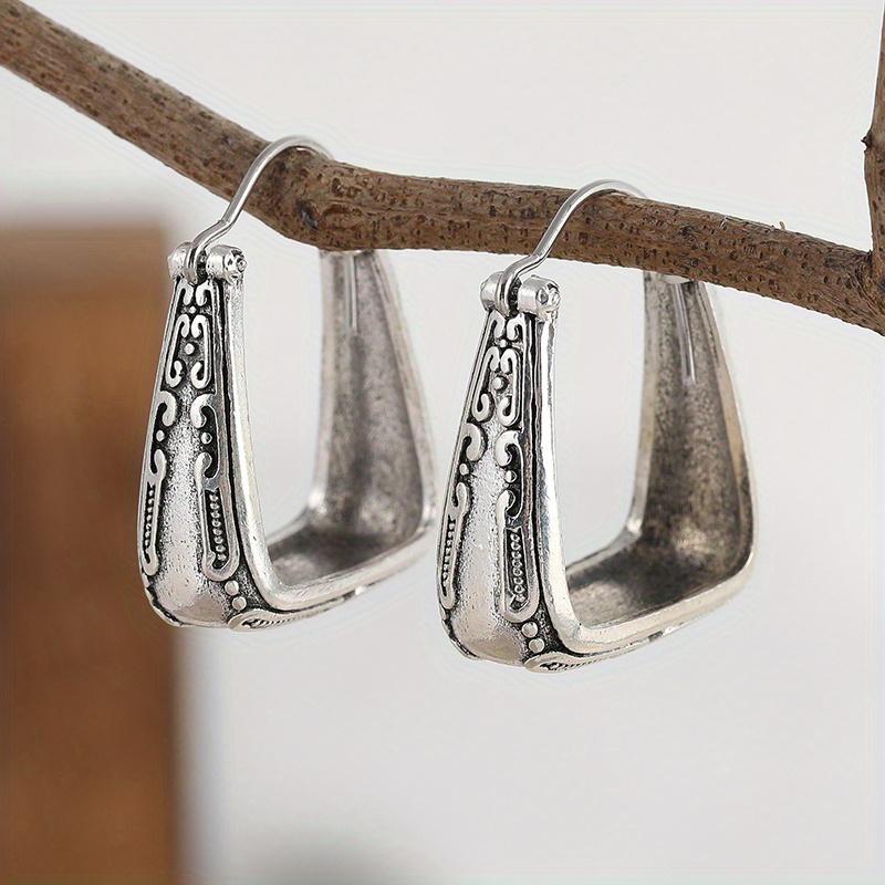 1 Pair Retro Patterned Bag Shaped Hollow Earrings Jewelry Silver Color Earrings Artisian Boho Textured Earring