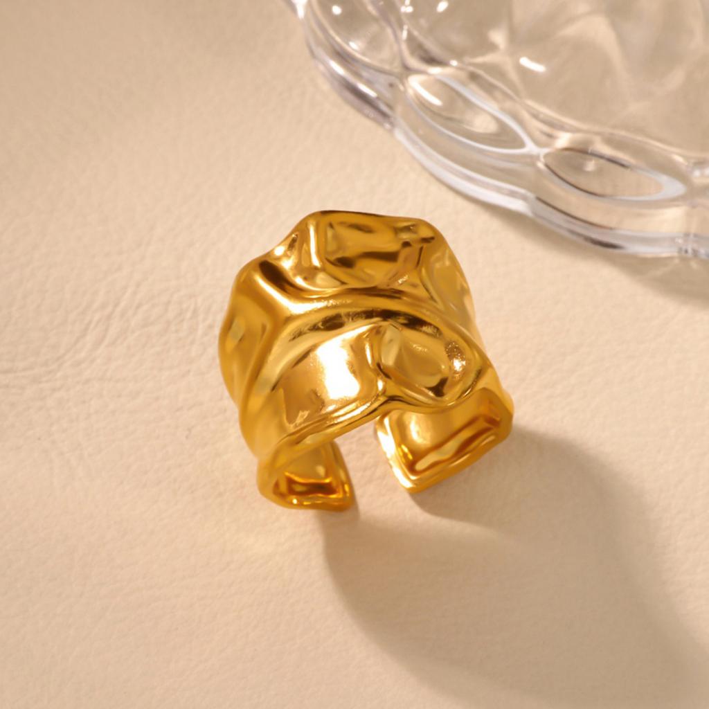 Vintage Wrinkle Texture Rings For Women Men Gold Color Stainless Steel Geometric Open Ring Couple Punk Christmas Jewelry