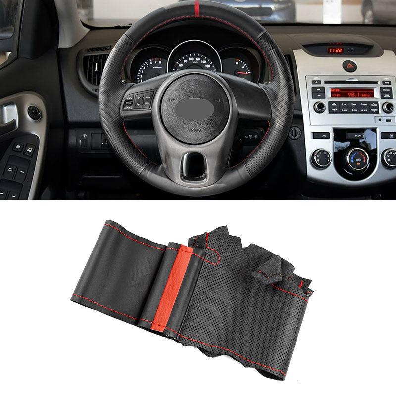 Car Accessories Steering Wheel Red Line with Red Strip Microfiber Perforated Leather Cover Trim For Kia Forte Soul Rio 2009-2011