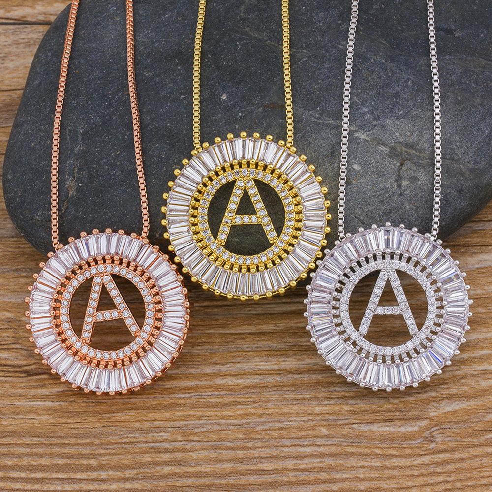 AIBEF Top Quality 3 Colors 26 Initial Letter Necklace Micro Pave CZ Pendant Necklaces Copper Charm Statement Jewelry Women Gift
