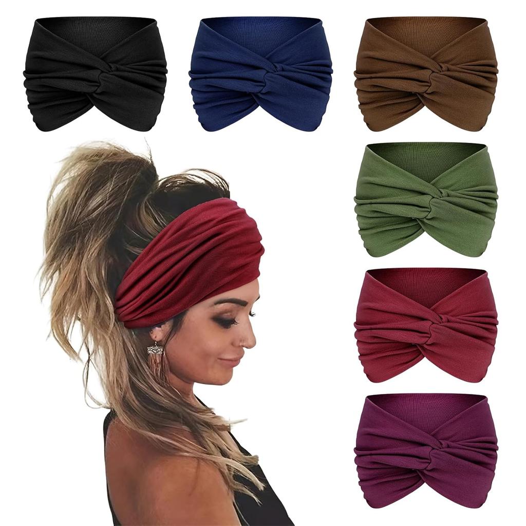 Wecoe Headbands for Women, 6pcs Fashion Knotted Headbands Wide Elastic Thick Turban Headbands for Wigs African Hair Head Wrap Sweat Headbands Workout