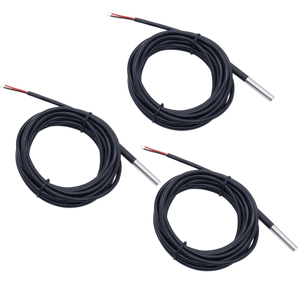 TWTADE 3Pcs DS18B20 3M Temperature Sensor Waterproof Stainless Steel Temperature Range (-55℃~ +125℃) 6mm Temperature Probe Sensor for Arduino
